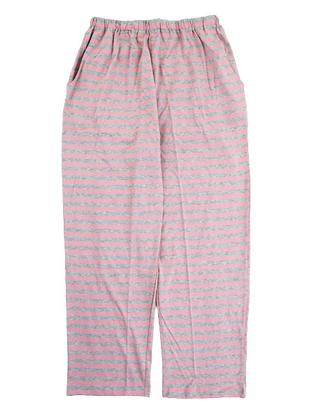 NERUGY、レディースの綿100%ルームパンツ、中ボーダー柄。コットン100%の素肌にやさしい天竺ニット素材。ストレートタイプ、両サイドにポケット付き、ウエストゴム調整機能付き、ウエストゴム取り替え口付き。