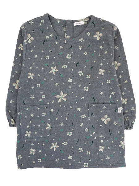 Hand Madeのレディースカッポー、花プリント柄。裏起毛ニット、心地よい裏起毛でぽかぽかあったかい。後ろは全開の4個ボタン留めタイプで背中もあったか。前左右にポケット付き。