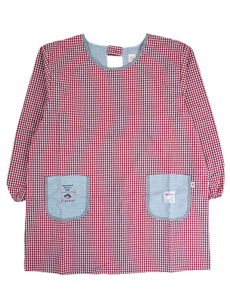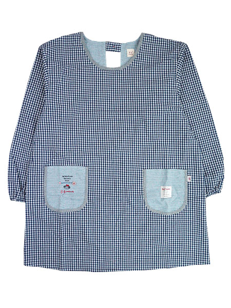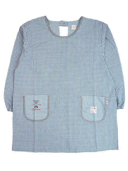 Big mamaのレディースカッポー、2L〜3Lサイズ。ポケット部分にビッグママの刺しゅう入り。ゆったりサイズのギンガムチェック柄エプロン。ポケットの部分使いの別布生地がアクセントになっています。前左右にポケット付き。後ろはネック部分ワンボタン、ウエストひも調節です。年間を通してお使いいただける生地のかっぽう着です。
