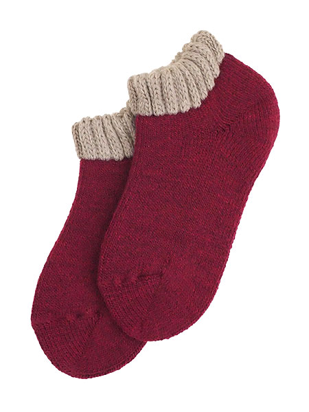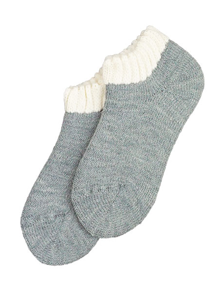 いたわり設計シリーズ、レディースのパイルソックス、ショート丈。ふかふかクッション編み、裏起毛で暖かい厚手の靴下です。寒い季節のルームソックスにおすすめです。日本製。サイズ:22〜24cm、丈はかかとから約8cm
