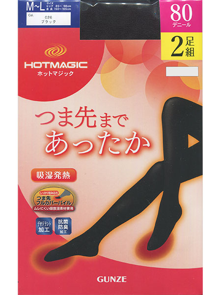 GUNZE(グンゼ)ホットマジック 婦人2足組タイツ つま先まであったか 80デニール