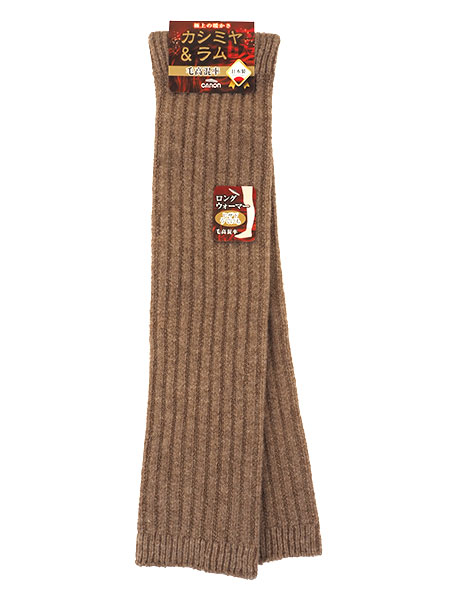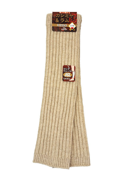キャロンのロングウォーマー、無地。ひざ上までのロング丈、うでの保温にも。両足分の2枚一組です。カシミヤとラムを使用。毛85%(カシミヤ20%&ラムウール80%のブレンド糸)・ポリエステル14%・ポリウレタン1%。毛高混率で極上の暖かさです。安心の日本製。丈は約39cmのロングタイプのあったかレッグウォーマーです。他にボーダー柄タイプや同シリーズのロングウォーマー49cm丈やショートタイプもございます。