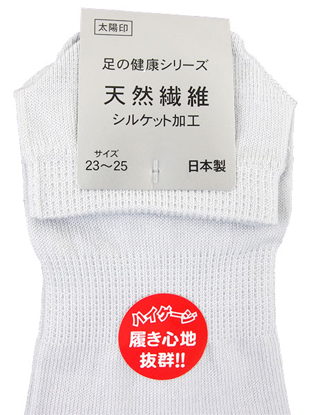 足の健康シリーズのレディース5本指ソックス。薄手で天然繊維使用の日本製。シルケット加工により、絹のような光沢がある靴下。裏に弾性糸使用で伸縮性があり、ハイゲージで編み目が細かく履き心地抜群。土踏まず部分にサポーター入りで楽なはき心地です。サイズ:23〜25cm、丈はかかとから約6cm