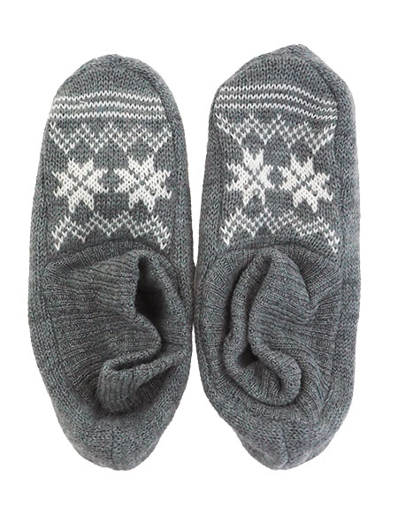 CREME GLACEEのレディースホームカバー、ノルディックの編み柄。足底にすべり止付ですべりにくく安心。寒い冬におすすめのアイテムです。サイズ:22〜24cm、丈はかかとから約9cm