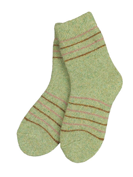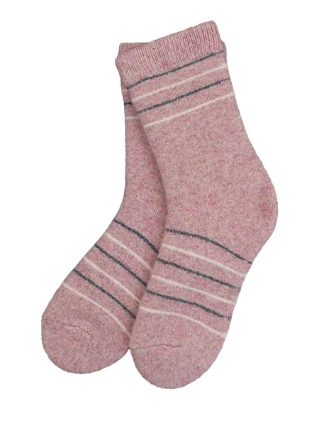 レディースのアンゴラ混のホームカバーです。厚地の細ボーダー柄ルームソックス。アンゴラ入りなのでふんわり軽くて、優しい肌ざわり。日本製。サイズ:22〜24cm、丈はかかとから約16.5cm