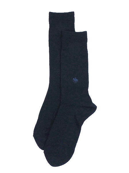グンゼ、POLOのメンズカジュアルソックス。暖かいメリノウール混。シンプルなリブの靴下なのでビジネスシーンにもご利用いただけるビジカジソックスです。POLOのワンポイント刺繍が片側に入っています。サイズ:25〜27cm、丈はかかとから約27cm