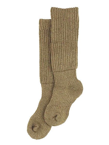 奈良のくつした、レディースハイソックス(ひざ下丈)。毛混で足首から上が2重編みの分厚いソックス。肌側ふくらはぎ部分にシルクを使用。つま先部分が大きめに作ってあるので、しめつけ感なし。寒い季節におすすめです。足底部分はパイル編みでクッション性があります。サイズ:23〜25cm、丈はかかとから約32cm
