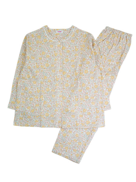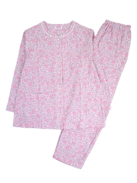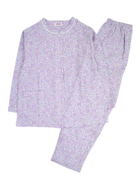 GUNZE(グンゼ)極暖レディース長袖パジャマ、綿100%暖か肌ざわり。風合いの良い綿100%の厚手スムース素材を使用した冬向きのあったかパジャマ。ソフトな肌触りと保温性があるのが特長です。袖口・足口ゴムにゴム通し穴付きなのでゴムを通して、ゴム絞り仕様にアレンジも可能です。花柄プリント。上衣:襟元レース付き、前あき、ラグラン袖、前右にポケット付き。パンツ:裾ストレート、ポケットなし、ウエストゴム取り替え口付き。