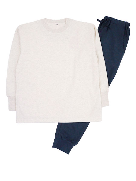 グンゼ、 ファイヤーアセドロン メンズ長袖パジャマ冬の汗冷えどこへやら FIREアセドロン ライナーだけインできるあったか設計背中の生地が2枚に仕立てになっているのでライナーだけインすれば背中から腰を集中保温シンプル無地のかぶりタイプのルームウェアです。上衣:丸首、首回り・袖口がリブ仕様、後ろ身頃にライナー付き・かぶりタイプパンツ:ウエスト紐付き、前とじ、両サイドにポケット付き裾口リブ仕様、ウエストゴム取り替え口付き