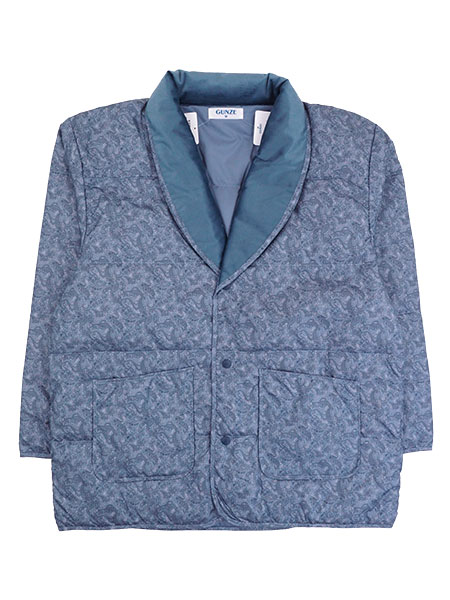GUNZE(グンゼ)のメンズ羽毛ジャケット、ペイズリー柄。中わたに羽毛を使用しているのでふんわり軽くてとっても暖か!襟部はボアで襟を立てれば首筋も保温できます。ボタンはスナップボタンで留め外しが楽です。両ポケット付き。ご家庭で手洗いできます(中性洗剤を使用して押し洗いをしてください)。