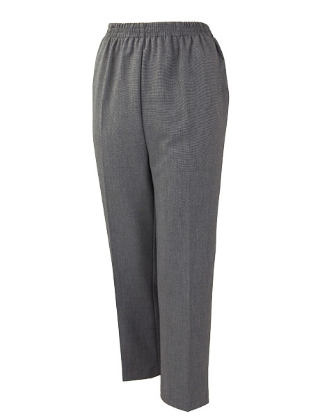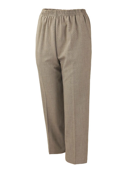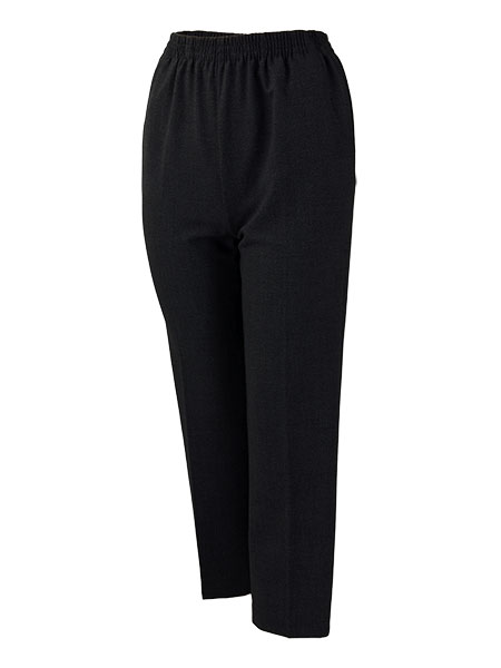 レディースのウエストゴムスラックス、丈直し不要。裾上げなしでぴったりサイズ、あらかじめ丈を短め(股下60cm)にしてありますので、ぴったりサイズに履いていただけます。ストレッチ素材使用、脚をほっそりと長く見せるシルエットです。両サイドポケット付で、ウエスト総ゴム、便利ではきやすく、お洗濯も家庭でOK。上品なシルエットではきやすい、やわらかストレッチの日本製スラックスです。