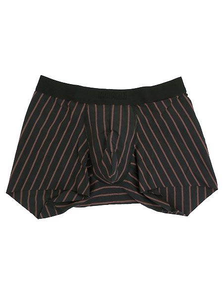 グンゼ、ボディワイルドのメンズボクサーブリーフ(前とじ)、ストライプ柄、ストレスフリーなはき心地。裾部がきりっぱなし仕様だから、ごろつきにくくスタイリッシュ。グンゼオリジナルのカットオフです。