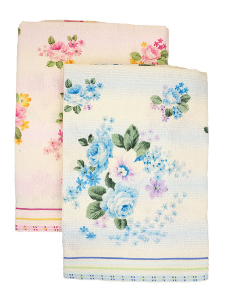 バスタオル、スィートローズ、ブルー・ピンクの2枚一組となります。