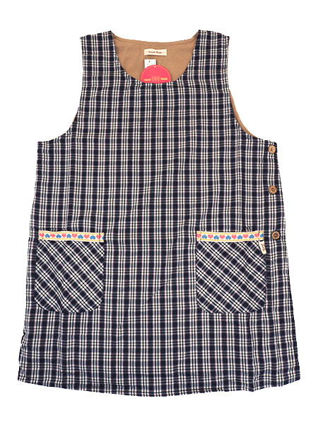 Hand Made 婦人裏フリース付 婦人チュニックエプロン チェック柄 サイドボタン