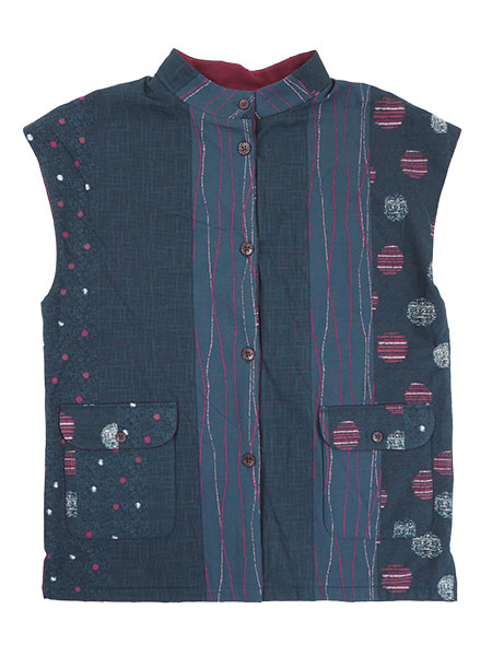れんげ 婦人前あき裏フリース和柄ベスト カイロポケット付き