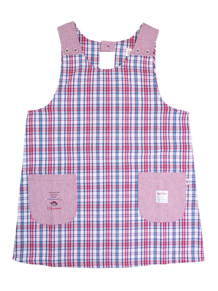 Big mama(ビッグママ) ラン型エプロン チェック柄 ウエスト紐タイプ