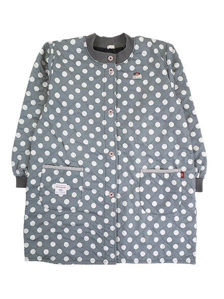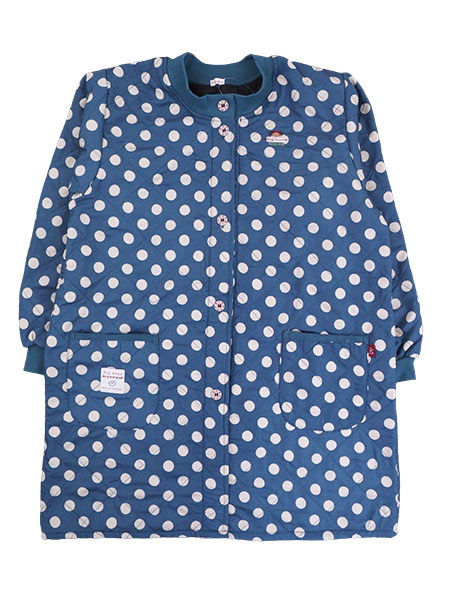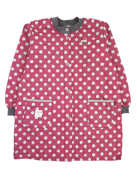 Big mama(ビッグママ) 裏フリース前開きキルトスモック 水玉柄