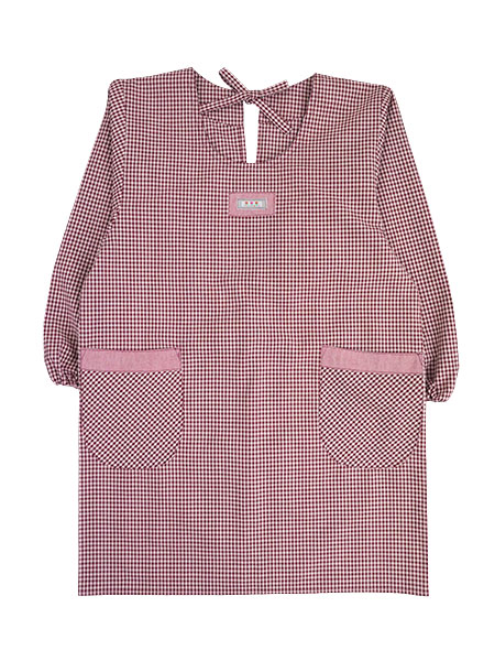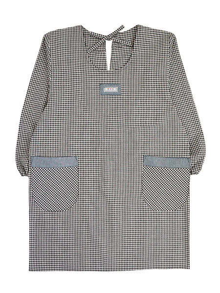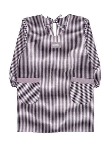 QHOUSEのレディースカッポー。 綿混ギンガム格子柄エプロン、約81.5cm丈。