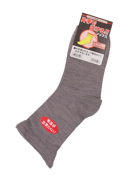 いたわり設計シリーズの片手ではける!メンズソックス、毛混。