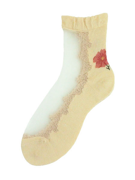>Telephone0.0 アンゴラ混 婦人シースルーソックス 足首花デザイン