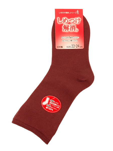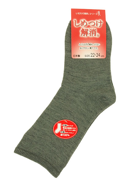 いたわり設計 しめつけ解消 婦人ソックス。 ふくらはぎを締めつけない、足にやさしい靴下です。ゴムの締め付けが気になる方へおすすめします。外側あったか毛玉ができにくい(東レコーピロン使用)、内側お肌にやさしい綿100%。日本製。 サイズ:22〜24cm、丈はかかとから約20cm