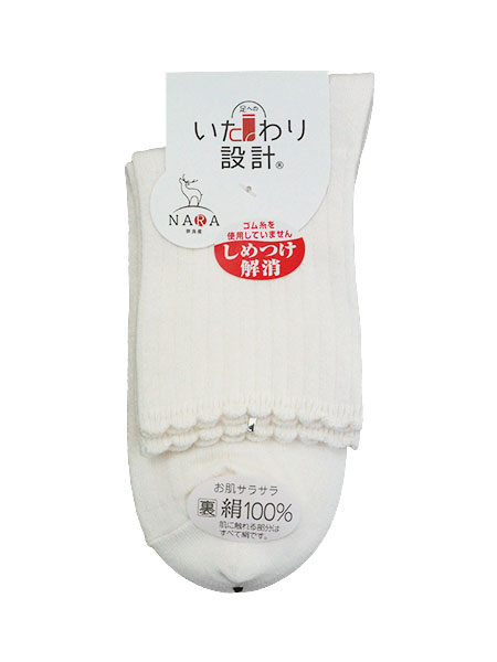 いたわり設計 婦人カジュアルソックス 締め付け解消 裏絹100% リブ