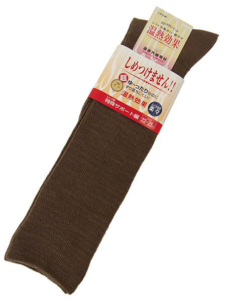 しめつけません!レディースハイソックス、温熱効果。 超ゆ〜ったりなのにずり落ちにくい、レッグ部特殊サポート編、ふくらはぎも楽々です。 遠赤外線素材(特殊セラミック練り込み)で温熱効果もある、冬にうれしいあったかソックス。 ソフトな風合い・あたたかさの、ひとにやさしいくつ下です。 サイズ:22〜25cm、丈はかかとから約33cm