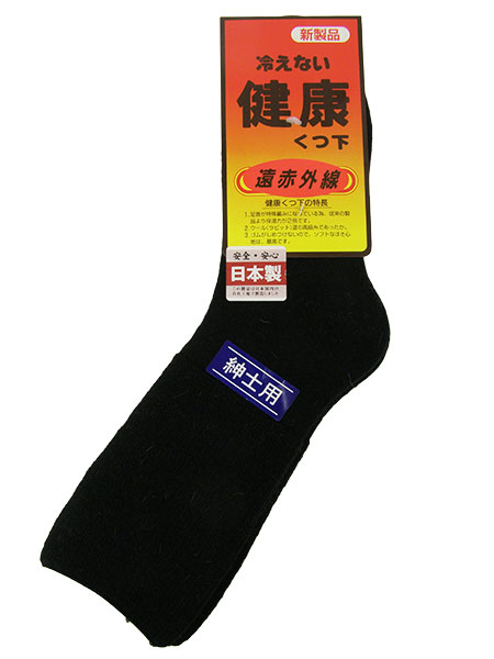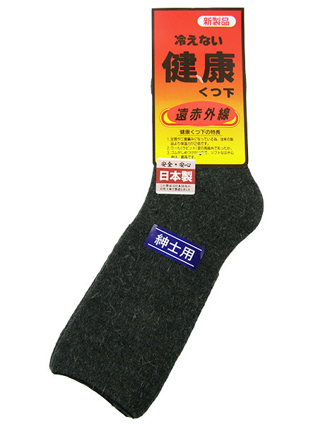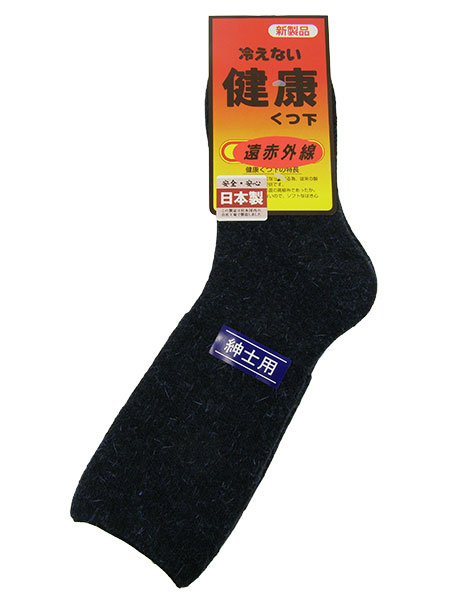 冷えない健康くつ下のメンズソックス。 底パイルなので足裏がふんわりあったか。 足首が二重編みになっているため、従来の製品より保温力が2倍です。 ウール(ラビット)混の高級糸であったか。 ゴムがしめつけないので、ソフトなはき心地は最高です。 遠赤外線でしめつけずに暖め血行を促します。 サイズ:24〜26cm、丈はかかとから約20cm