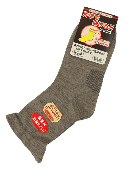 いたわり設計シリーズの片手ではける!メンズソックス。