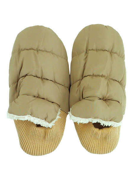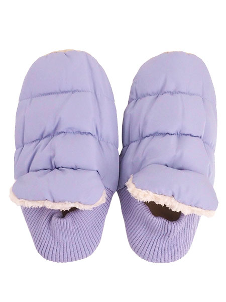 素材:表地・裏地:ポリエステル100% かかと:ポリエステル97%・ポリウレタン3% 中わた:ポリエステル90%・合成繊維(アクリレート系)10% 足底:ポリエステル100%(ポリウレタンコーティング)(冬用)