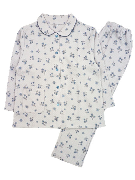 NERUGY 婦人長袖・長パンツパジャマ 花柄 肌側綿100% ソフトニットキルト