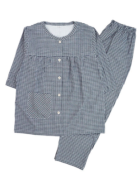 NERUGY 婦人7分袖・長パンツパジャマ ギンガムチェック 綿100%サッカー