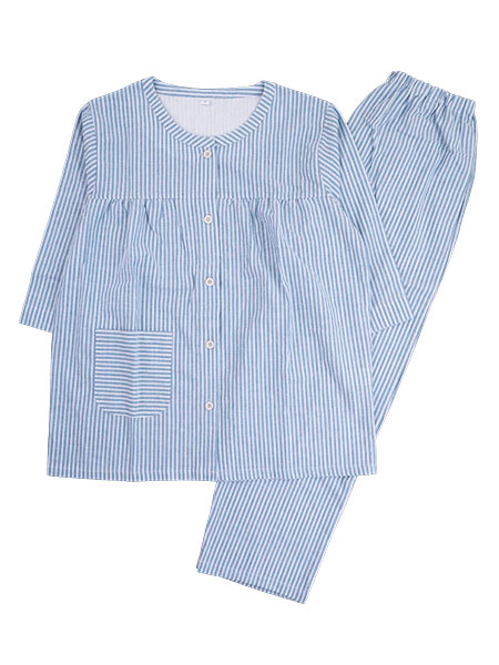 >NERUGY 婦人7分袖・長パンツパジャマ ストライプ 綿100%サッカー