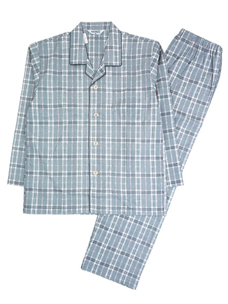 GUNZE(グンゼ)紳士長袖・長パンツパジャマ 日本製 高島ちぢみ 綿100% チェック柄