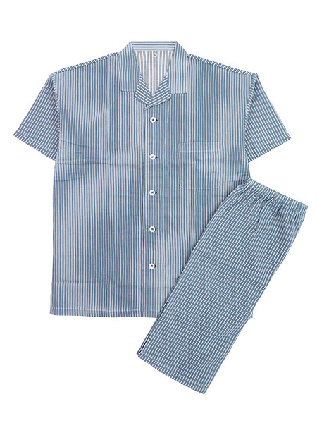 グンゼ アセドロン 紳士半袖・5分丈パンツパジャマ ストライプ柄 背中メッシュ