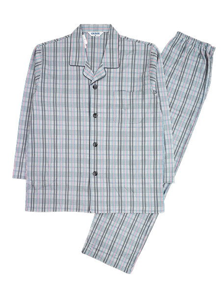 >グンゼ 紳士長袖・長パンツパジャマ 京都捺染 日本製 綿100%スムース