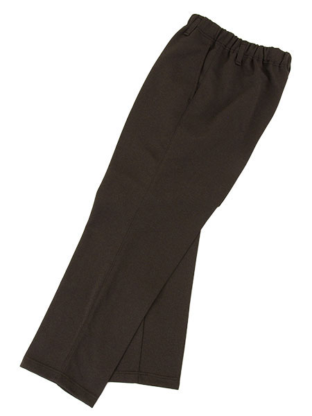 ウエスト総ゴムですが、前あきでセンタープレスラインがあるため、見た目は普通のスラックスのようです。